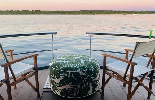 After you return to this 398-sq-ft houseboat, unwind on the deck or patio or sip a drink by the firepit, and don't forget about the outdoor furniture. For a change of scenery, come inside and enjoy the free WiFi, TV, and stereo.