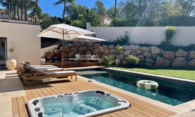 Sublime architect-designed villa with pool & spa 15 min from Montpellier is located in Prades-le-Lez. Sublime architect-designed villa with pool & spa 15 min from Montpellier provides accommodation, featuring Air Conditioner, Security/Safety, Child Friendly, among other amenities. This Villa features Air Conditioner, Security/Safety, Child Friendly, to make your stay a comfortable one.