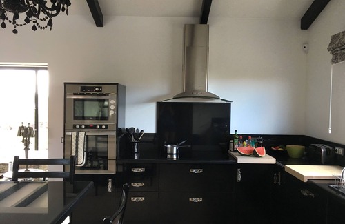 DVD. WiFi, kitchen with dishwasher, oven, pizza oven, microwave and various kitchen appliances, large fridge-freezer