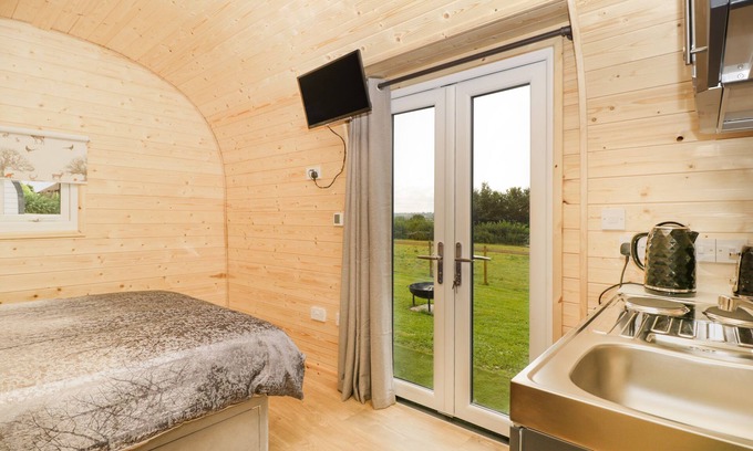 This pod is situated just outside of Axbridge, Somerset and can sleep two people in one bedroom.