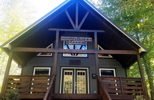 Sugar Tree Lodge is a secluded, custom 1500 sq ft timber and glass framed lodge built on 2 1/2 private acres with 600 sq ft. of outdoor decking. The lodge is located in Warrensville, NC, a 10 minute drive to downtown West Jefferson and a 20 to 40 minute drive from Boone, Blowing Rock, Appalachian State, the Blue Ridge Parkway, Tweetsie Railroad, several ski slopes and many more attractions.