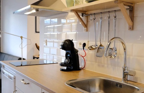 Fully equipped with top quality comfortable bed (1'50m) 100% cotton bed linen, closet and living room, kitchen with appliances, utensils, kettle, juicer, toaster, cofee maker, bathroom, towels, hair dryer, clothesline, etc.