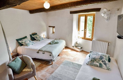 A beautiful independent suite, on the 1st floor (no lift) of our former silkworm farm, consisting of 2 bedrooms and 2 bathrooms. completely renovated perfect in 2022. for a family or two couples with a child.