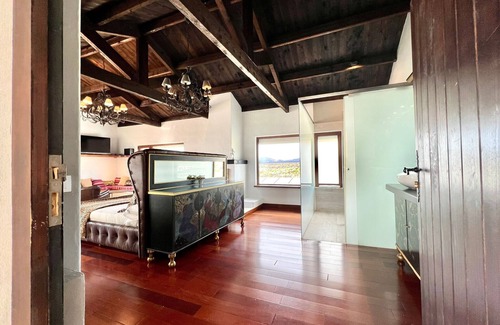 It's The Room!!! It has 360º of the best views of Lanzarote, a very large terrace with views of the sea, the Timanfaya National Park and the town of Yaiza, with hammocks, outdoor sofas and a table as well as a small fridge.
