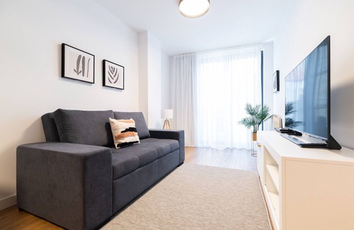 Discover Vigo from this modern apartment with parking just a step away from the city center. Enjoy a cozy space with a quality sofa bed, fully equipped American kitchen, and complete bathroom with shower. High-speed Wi-Fi connection will keep you connected. The great added value is its nearby parking, which frees you from the stress of parking and allows you to comfortably explore Vigo and its surroundings. Immerse yourself in the vibrant city life, with its main tourist attractions, delicious restaurants, and varied shops, all just a few minutes away on foot or by car. This apartment is your ideal base for a comfortable and hassle-free stay in the heart of Vigo. We look forward to welcoming you!