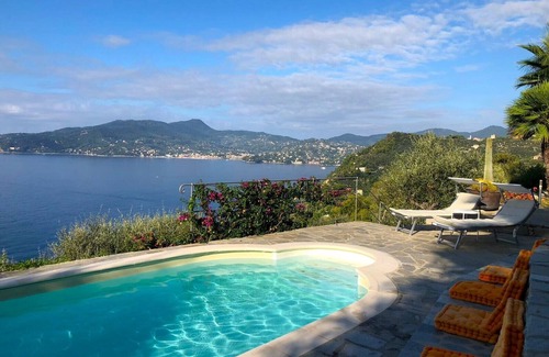 Located on the hill overlooking Zoagli, it is equipped with a jacuzzi, private patio and garden and a panoramic swimming pool shared with the owners of the adjacent villa.