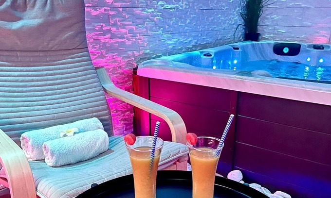 Semi-equipped kitchen (fridge, oven, hob, senseo with cutlery), tropical bathroom and wellness area with jacuzzi and connected TV (Youtube & Netflix).