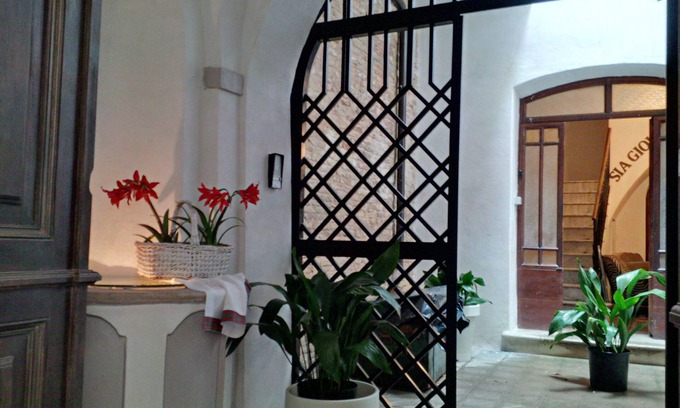 The Suite, called "Suite San Nicola", is ideal for a family because it consists of a double room and a twin passage room, a white living room with a medieval flavor overlooking the patio, a nice bathroom with shower, a balcony overlooking the square. Air conditioning in all bedrooms and free wi fi, free public parking in the square in front. Renovated by enhancing the original architectural elements and materials, the house offers guests maximum comfort, comfortable beds and new bathroom, original furniture and floors, vaulted ceilings, decorated walls. The TV is in the common room. The entrance, almost a Spanish patio, evokes distant atmospheres because everything speaks of the ancient origins of the house, and so does the old cistern in the courtyard, the wide staircase, and then the view and then the fireplace ...