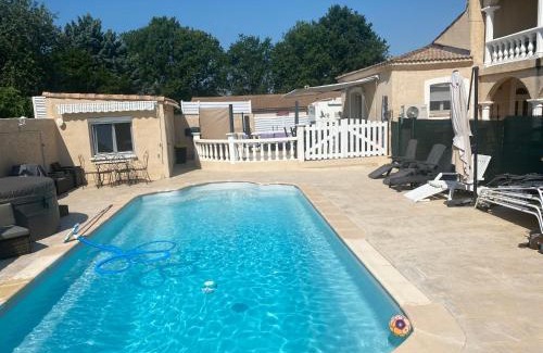 Suite lit double provides a hot tub and free private parking, and is within 26 miles of Parc Expo Nîmes and 30 miles of Agrolpolis International. All guests of the property enjoy access to a sun terrace and a seasonal outdoor pool. The accommodation features a shared kitchen and a shared lounge for guests. With free Wifi, this homestay offers a flat-screen TV, a washing machine, and a fully equipped kitchen with a dishwasher and oven. Guests can enjoy a meal on an outdoor dining area while overlooking the garden views. The accommodation offers an air conditioning, a heating, and a private bathroom. A continental breakfast is available at the homestay. Montpellier Zoo is 30 miles from Suite lit double. Nimes-Ales-Camargue-Cevennes Airport is 35 miles from the property.