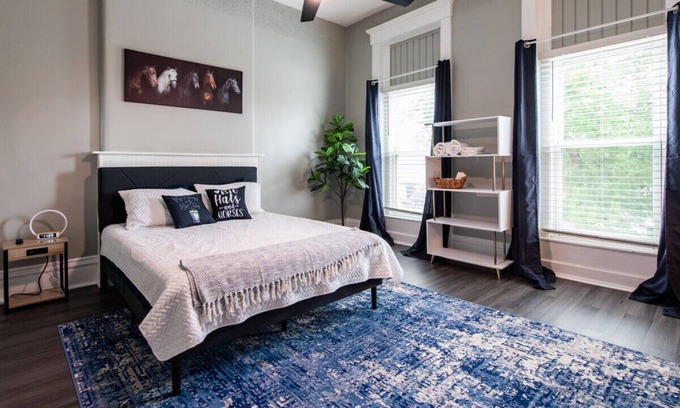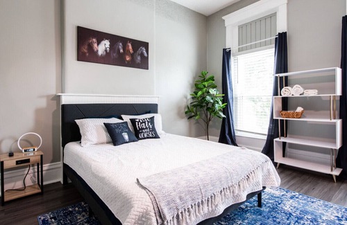 Welcome to THE LOUISVILLE LODGE – Suite V! The location is EVERYTHING! This home is located in Louisville, KY – about 1.5 miles from downtown Louisville, KY, and less than 10 minutes | 5.0 miles from Louisville International Airport, The Uni. of Louisville, Churchill Downs, restaurants, shopping, parks, and more. Whether our guests are in town for a few nights, the week, a month, or more – we can, and will, accommodate all lengths of stay. The Louisville Lodge – Suite V offers the guests an entrance code to the house (front & back entrance), and to their own room; which includes a Queen Bed with a new foam mattress, a Smart T.V. to stream their favorite shows and movies, space for storage, and shared bathrooms. The L. L. offers a shared kitchen and dining area; which has all the facilities and appliances needed to store drinks and foods, cook, and dine, as well as a Keurig machine with free coffee to kickstart the mornings or extend the nights. The L. L. offers a shared washing and drying machine, and iron with an ironing board for our guests convenience. The L. L. offers all the essentials : Free Wi-Fi (500+ mbps), Air Conditioning, Heating, Ventilation, etc. The L. L. covers the safety protocols and is equipped with camera surveillance of the home. A professional cleaning service comes three times a week to clean the common areas – including all shared bathrooms. There is free parking on our street. We ask that residents treat other residents with respect and follow our few rules :