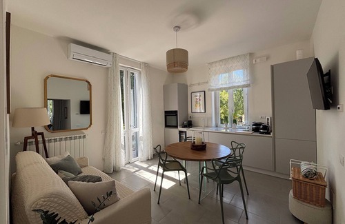 Suite Vallombrosa offers a living area with a fully equipped kitchen, air conditioning, heating, an induction hob, a refrigerator, a freezer, an oven, an electric coffee maker, a window, and a balcony.