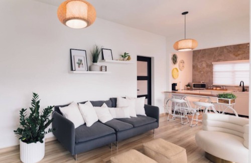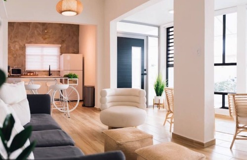 Casa Santiago Apartment #1 is a spacious, cozy, and modern space with a private pool featuring a waterfall that you can enjoy 24 hours a day. The property is equipped with air conditioning throughout, a Smart TV in both the bedroom and living room. Additionally, it boasts a fully equipped kitchen, private parking, and the convenience of being located within a 5 to 10-minute drive from the most beautiful beaches, restaurants, supermarkets, the (BQN) airport, and popular attractions.
