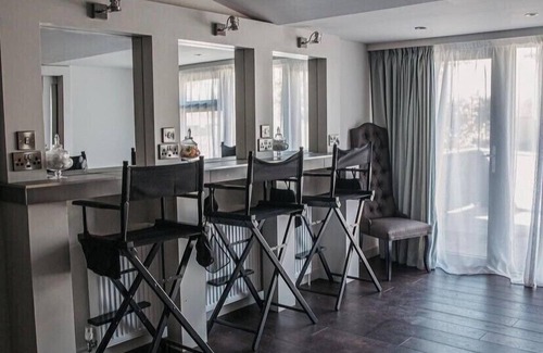 Dedicated |"getting ready" area with large mirrors and plenty of natural light.