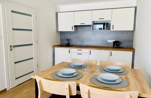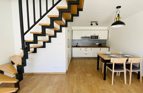 Escape to a serene retreat just 750 meters from the seaside beach in the charming town of Jarosławiec. Nestled in a quiet area yet steps away from the vibrant resort center, this property offers the perfect blend of relaxation and convenience. Stay in cozy, two-story summer houses featuring a spacious terrace with garden furniture, a fully equipped kitchen, a comfortable living room with a sofa bed and TV, two separate bedrooms, and a modern bathroom with a shower. Enjoy year-round comfort with air conditioning that both cools and heats. A utilities & service fee of PLN 150,00 will be required closer to your checkin date. You will receive a separate communication with the payment link. The utilities & service fee ensures a smooth stay and covers any additional services such as cleaning, service charges, consumption, damages or any additional charges incurred during the stay.