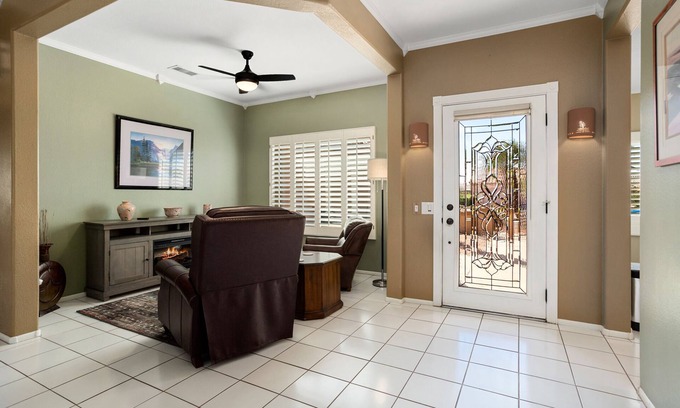 SUMMER SPECIAL BEAUTIFUL home located in Sun City Grand ENJOY OUR WEATHER has 2 Bedrooms , 2 Bathrooms, and max occupancy of 4 people. The minimum rental for this property is 1 nights, but this can change depending on the season you plan on staying. Previous guests have given good rated it, and VRBO labeled it a top-rated House because of the excellent services rendered by the owner or manager of this House, and has consistently provided great experiences for their guests. Most families or guests that use it recommend it to their friends and some of them are repeat guests. House has a friendly neighborhood, and the Desert Palms has interesting places to visit. If you want to learn more about the House in Desert Palms, such as places to visit and things to do nearby, you can check below to learn more.
