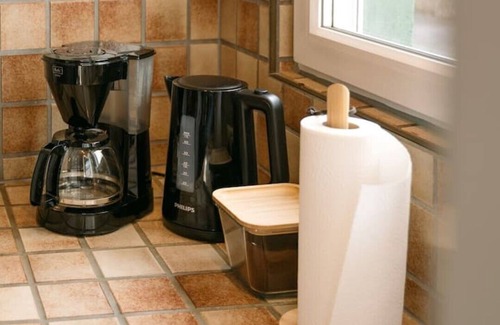The kitchen is equipped with an oven, a stovetop, and a refrigerator, as well as a coffee maker, an electric kettle, and a microwave. Bathroom amenities include a hair dryer, towels, and toilet paper. And you can even travel light because you'll have access to laundry facilities. Other amenities include bed sheets, heating, and a dining table.