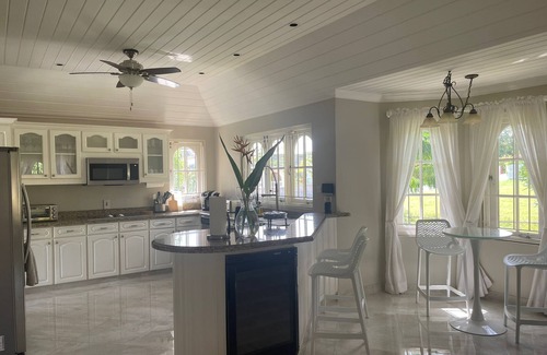Sun-Kissed Villa is an immaculate, wonderfully tranquil, light and spacious, beautifully furnished, 4 bedroom, 3 full bathroom, 2 half bathroom detached villa, with its own pool and hot tub, set in a large plot with enclosed, secluded, tropical gardens. The villa can accommodate a maximum of 6 adults and 2 children. There are stunning marble floors and exquisite wood ceilings throughout. The villa is located on the prestigious Barbados Golf Club and 5 minutes from Welches Beach and the not to be missed Oistins Fish Fry.