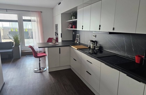 Stay comfortably in a brand-new 1-bedroom apartment located in a quiet area right next to the metro station, offering perfect access to the city center of Prague. The apartment is newly built and fully equipped with all new furnishings. One of its highlights is a spacious private terrace, perfect for relaxing with a coffee or enjoying a quiet evening. You'll enjoy a peaceful stay with excellent transport connections. The host takes pride in maintaining a high standard of cleanliness to ensure a welcoming and spotless environment. Whether you're here for work or leisure, this space is ideal for making your stay in Prague truly enjoyable.