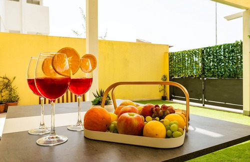 Sun Terrace Home is a modern apartment perfect for families, couples and friends seeking comfort and style, just a short distance from the sea. This accommodation, located on the ground floor with no stairs, features a spacious private terrace equipped with a private fitness area, relax area and barbecue.