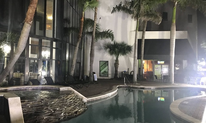 Central hotel with a seasonal outdoor pool connected to a shopping center in South Padre Island
