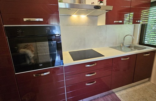 Kitchen is new and fully equipped with a dishwasher, stove, oven, kettle, toaster, coffee machine and fridge with freezer, ready for you to prepare any kind of tasty meal.