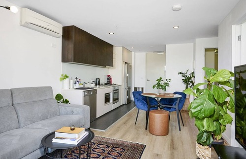 immerse yourself in contemporary elegance with this sunlit apartment, boasting a spacious open-plan design adorned with modern furnishings. the expansive living area, illuminated by floor-to-ceiling glass, seamlessly transitions to a private balcony, offering panoramic views over richmond and glimpses of the melbourne skyline. with space to comfortably accommodate up to four guests, this home is a haven of comfort and style, ensuring a memorable stay with every luxury at your fingertips.