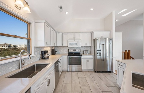 This semi-oceanfront home is situated on one of the best lots in Whalehead Beach just steps across the street from the beach access. You'll enjoy ocean views and gorgeous sunsets over the sound from both the decks and interior rooms. When you're not at the beach, the home comes complete with all the amenities to make your vacation fun and relaxing including a swimming pool and hot tub, game room with pool table, spacious backyard for grilling, volleyball court, basketball goal and is a short distance from water sports, golf, fishing, shopping and restaurants.