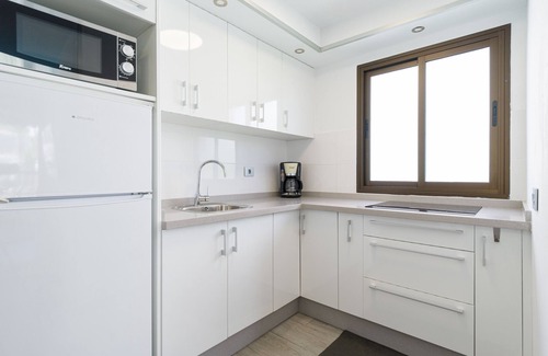 New holiday home completely renovated in 2022, managed by Canariasgetaway (visit our website), three minutes walk from Puerto Rico beach, in a small complex with just a few neighbours and extremely quiet-It has been designed for the comfort and rest of travellers who want to enjoy one of the places with the most sunshine hours in Gran Canaria.The property consists of 2 bedrooms - one double and one single - very bright exteriors. It also has a spacious living room with integrated kitchen and a fantastic balcony with views of the quiet and relaxing pool and capacity for 3 people.The 50 m² accommodation, cosy and very bright, has views of the pool, garden and ravine that flows into the fantastic Puerto Rico Beach, always with its calm waters. It is fully furnished and has all the amenities for both short holidays and slightly longer stays.The American kitchen, with ceramic hob, is equipped with fridge, microwave, oven, freezer, washing machine, crockery/cutlery, utensils/kitchen, coffee maker, toaster, kettle and juicer.The property has: air conditioning in the living room, international channels, iron, unlimited internet access (wifi), hairdryer, communal pool, and Smart TV.Located in an ideal area for families and next to the sea.Puerto Rico, the ideal place to spend 24 hours in swimwear, without remembering absolutely anything about the office or the stressful day-to-day of the rest of the year.The blame for this entire situation lies with the good weather experienced in Puerto Rico practically all year round. A soft sun that seems not to want to leave this small valley in the south of Gran Canaria, nor its beach nor the apartments and hotels that dot the cliffs.Puerto Rico, in the south of Gran Canaria, is one of the places in Europe that brings together the largest number of people determined to sunbathe even in the middle of December.That soft sun, which is distributed practically twelve months including winters. The same soft sun that has turned the small beach of Puerto Rico and its neighbouring Amadores beach into one of the places with the best climate in all of Spain.The Puerto Rico beach, with just over 280 metres in length, stands out for its family and relaxed atmosphere: the youngest enjoy playing with the golden sand and learning to swim on the shore while the older ones rest with all the tranquillity they desire. It is a welcoming beach where the sea is always calm, making it ideal for enjoying a swim at any time of the year.Sunbeds and umbrellas and the proximity of a wide variety of shops and services make it possible to spend the whole day with the family on Puerto Rico beach. The visitor can read a book in the shade, take a kayak ride or enjoy a refreshing drink under the sun. Although it can be accessed by bus, it has a car park for those who decide to come in their own vehicle.Recent construction of Mogan Mall - new large shopping centre, with a wide variety of shops and high-quality restaurants.
