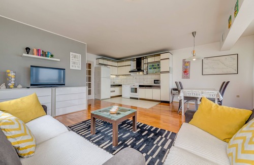 Apartment is located at the beginning of Stobrec seafront promenade, at the second floor of a small building. It is only 10 m from the sea so, when you are on the terrace, it seems like you are on a cruise ship! You can also see the biggest beach in Stobrec directly from the terrace. The apartment consists of open kitchen and dining area (the kitchen is equipped with all the facilities you may need), also there are 2 double bedrooms, 2 bathrooms and a small storeroom. The apartment can comfortably accommodate up to 4 persons. If you are coming with a car there is a free garage parking spot for you. There is a large grocery store at the ground floor of the same building.