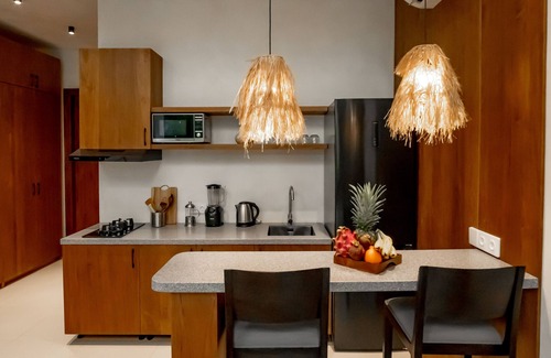While you're here, you can enjoy all the comforts of home and more, including a refrigerator and a stovetop, as well as free WiFi and a Smart TV. Other amenities include Egyptian cotton sheets, premium bedding, a pillowtop bed, and down comforters.