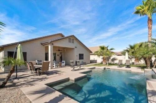 Featuring a garden, Sunny Escape Cozy Chandler Home offers accommodations in Chandler. This property offers access to a terrace and free private parking. The vacation home has a year-round outdoor pool and a hot tub. With free Wifi, this 1-bedroom vacation home features a flat-screen TV, a washing machine, and a fully equipped kitchen with a dishwasher and oven. Towels and bed linen are available in the vacation home. The property has an outdoor dining area. Phoenix Convention Center is 24 miles from the vacation home, while Copper Square is 24 miles from the property. Phoenix-Mesa Gateway Airport is 14 miles away.