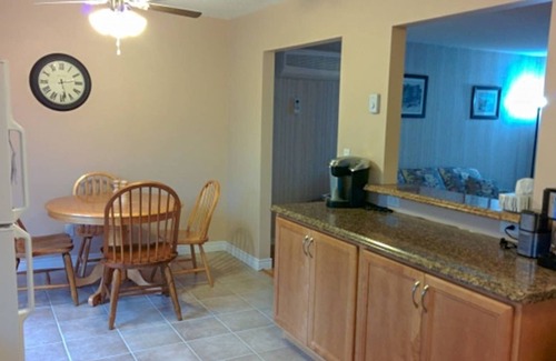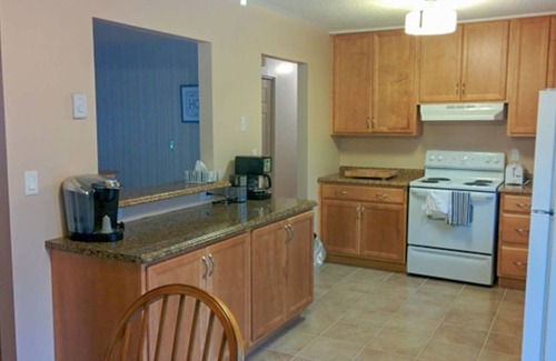 The eat-in kitchen is clean and bright with everything you need to prepare meals in. Fridge,Stove, Microwave, Dishwasher etc. Seating for 4 at the table and lots more outside.