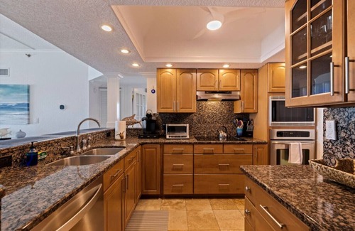 At the end of the day, come relax in the large master suite with new pillow top king bed and private ensuite, with it’s own Jacuzzi whirlpool tub. The 2nd guest suite has a wonderful pillow top queen bed. The third bedroom has two twin beds. Large second hall bath. Fully equipped gourmet kitchen with attached laundry room ( full size washer and dryer). Wireless internet, Cable, and Netflix are included and available for viewing on all TV’s. A 50” large screen HD/Smart TV is in the living room, 40” HD/Smart TV in the Master Bedroom & 32” HD Smart TV’s in the 2nd and 3rd bedroom. Plenty of Books, Puzzles and Board Games are also available for your enjoyment. The unit has an alarm for your safety, a coded entry so no key is required to enter the unit.