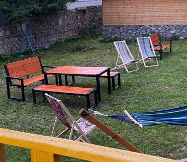 Featuring a garden, Sunny Side Cottage provides accommodations in Kazbegi. This chalet features accommodations with a balcony. Free Wifi is available throughout the property and Republican Spartak Stadium is 29 miles away. The chalet is composed of 1 separate bedroom, a living room, a fully equipped kitchen, and 1 bathroom. A flat-screen TV is available. The accommodation is non-smoking.