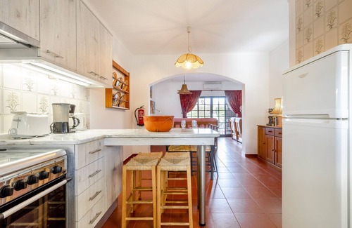 It has 2 bedrooms, kitchen and living room connected with very generous areas. The villa has two fantastic porches for relaxing or dining with plenty of shade and sun. Has barbecue in the back garden.