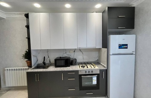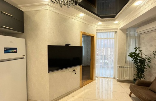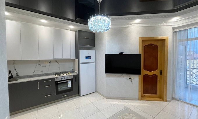 This apartment locates center of city and right nextdoor to our apartment so we ensure you safe and comfortibel stay. Apartmant is new and looks very different from outside. However it is a great neighborhood. We got brand new Elevator that is satisfying all standarts.