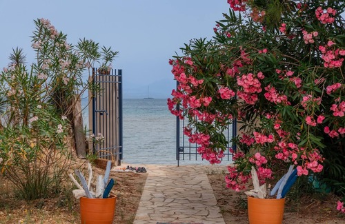 Our lovely villa offers the perfect holiday right on a safe sandy beach! The pool terrace and gardens have a gate onto a 'personal' piece of beach with sun umbrellas and loungers, separated by a gate and shrubs from the main beach. The garden gate opens on to the safe, sandy beach, with shallow, calm sea, or you can relax by the large pool in the garden. The house is a rare find - there are very few properties directly on the beach in Corfu, and even fewer which are directly on sandy beaches, ideal for families.