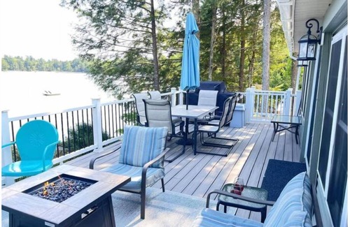 This spacious cottage is located close to the water with an amazing view of the lake from the kitchen counter, living room, dining area and the deck.