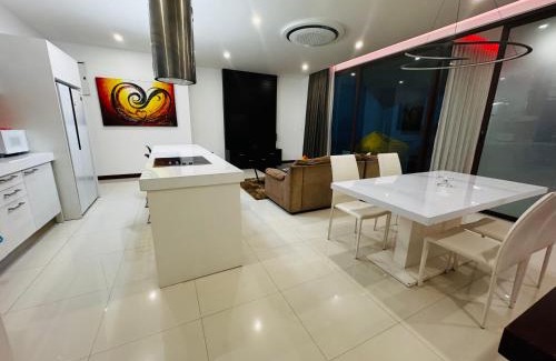 Sunrise Villa 21 offers accommodations in Phuket, 11 miles from Two Heroines Monument and 13 miles from Blue Canyon Country Club. This beachfront property offers access to a balcony, free private parking, and free Wifi. The villa has a private beach area and an electric vehicle charging station. Featuring a terrace and garden views, the spacious villa includes 4 bedrooms, a living room, flat-screen TV, an equipped kitchen, and 4 bathrooms with a bath and a shower. The villa also features an outdoor swimming pool and a hot tub for guests to relax in. A car rental service is available at Sunrise Villa 21. Wat Prathong is 14 miles from the accommodation, while Splash Jungle Water Park is 16 miles from the property. Phuket International Airport is 13 miles away.