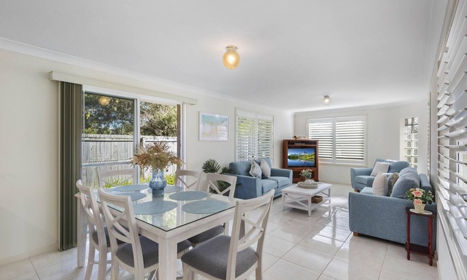 This recently refreshed two level townhouse is located a few streets back from the beach at Lennox Head. Positioned at the back of the property, Sunset at Gibbon is where you will find peace, space and privacy. Just a short stroll to Lennox Village with its' many cafes, restaurants, grocery, clothing and gift shops, the property is conveniently located to just about everything you can think of.
