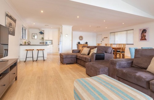Nestled right on the lakes edge, this spacious, modern property has everything you need to make your next holiday infinitely memorable. With open plan living flowing onto the extended covered rear deck, you'll relish being able to relax as you look over the lake, watching the sunset on another ideal day. In Winter, you can fire up the combustion wood heater and enjoy the lake and surrounding beaches which is the perfect playground in Summer.