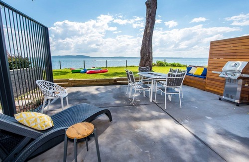 SUNSET@CORLETTE is a small, modern absolute waterfront accommodation overlooking Port Stephens. Located right on the water along the most popular stretch of waterfront in the Bay known as the "Golden Mile" by locals - enjoy your own piece of paradise. This is a modern and fresh appealing ground floor apartment. Its finishes and furnishing are of a high standard and would appeal to the particular traveller. It is centrally located in the Port Stephens for all tourist attractions and just 3 minutes drive in each direction are the main shopping haunts - Salamander Shopping Centre and Nelson Bay Town Center - awash with restaurants and cafes.