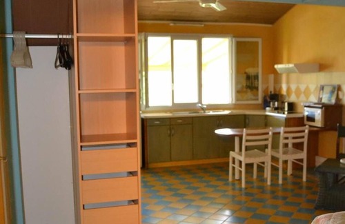 Ground floor apartment, separate entrance, mezzanine opening onto the main room.