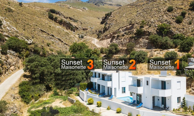 Sunset is a quaint complex comprising 3 identical modern maisonettes that share a swimming pool. This charming complex is located in the southern part of Crete on the outskirts of Mariou village, just a short drive from the sandy beaches. Here, you can relish stunning views of the Libyan Sea and the surrounding landscape. Each maisonette has a ground floor featuring a spacious and comfortable living room with a large sofa and dining table, a satellite TV, heating, and captivating vistas. Additionally, there is a fully equipped modern open-plan kitchen and a guest WC.On the first floor, there are two bedrooms, one with a double bed and the other with two single beds, accompanied by a modern bathroom. The balconies on this level offer incredible views of the sea and the surrounding landscape. All areas are air-conditioned, and high-speed WiFi internet is available throughout the complex. Outside, there is a shared swimming pool and outdoor furniture where you can relax.The village itself hosts a delightful traditional tavern within walking distance from the property, while the famous tourist area of Plakias is just 3 kilometers away, offering an array of amenities and attractions. Within the same distance, you'll find renowned sandy beaches with crystal-clear waters, water sports facilities, and various taverns, cafes, and bars. A car is considered essential to fully explore this beautiful region.