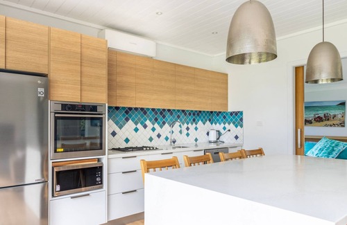 This inviting house boasts three bedrooms, comfortably accommodating up to eight people. As you step inside, you're greeted by a seamlessly connected lounge room, dining area, and kitchen, all adorned with a clean coastal theme that evokes a sense of relaxation and seaside charm.