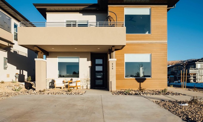 We welcome you to our modern cliff-view home and invite you to soak up the South Zion solitude characterized by vermillion cliffs, sweeping sunsets, and the charm of the desert. The home is equipped with ideal amenities: a private hot tub, fully-stocked kitchen, cliff-view deck, and outdoor fireplaces. Whether you’re seeking adventure or tranquility, our sleek sanctuary is built to provide the atmosphere of a home away from home.
