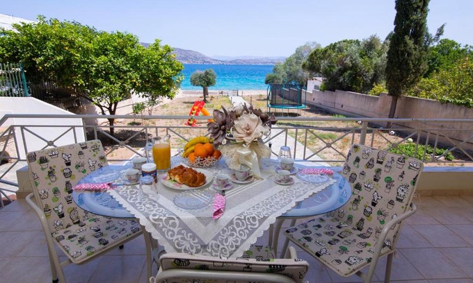 This beachfront property offers access to a balcony, free private parking, and free Wifi. Featuring a terrace and sea views, the spacious apartment includes 1 bedroom, a living room, flat-screen TV, an equipped kitchen, and 1 bathroom with a shower. Towels and bed linen are available in the apartment. For added privacy, the accommodation has a private entrance and soundproofing. Outdoor play equipment is also available at Sunset Resort, while guests can also relax in the garden. The nearest airport is Eleftherios Venizelos Airport, 53 miles from the apartment.