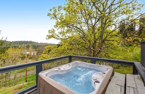 Experience the charm of Deer Harbor in Sunset View Cabin overlooking the Cayou Valley, the ocean lagoon, and the harbor itself. This suite has a private entrance, a small breakfast nook, a gas grill, and a nook where you can prepare morning coffee and enjoy light snacks. Enjoy the comforts of a private hot tub, a lovely fireplace, an air conditioner on warm summer days, streaming TV, a clawfoot bathtub with a shower, and extra sleeping space on the daybed with fantastic views all around.