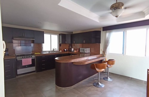 This private beach penthouse is all about enjoying a perfect family vacation. There is a spacious main living area with all its comfortable furnishings, large sliding doors affording an abundance of natural bright light. 3 spacious bedrooms with comfortable beds, pillows, and soft lines. Three large full bathrooms. Fully equipped kitchen area. It has spectacular ocean and Salinas city view. I guarantee you would love staying at this unit and enjoying its social areas like the pool, BBQ, Steam room.