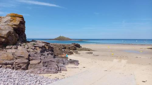 Featuring a garden, Sunset View over beach at Sables d'Or offers accommodations in Sables-dʼOr-les-Pins. Both free Wifi and parking on-site are available at the vacation home free of charge. Outdoor seating is also available at Sunset View over beach at Sables d'Or. With direct access to a balcony with garden views, the spacious vacation home consists of 4 bedrooms. Offering a terrace with sea views, this vacation home also has a satellite flat-screen TV, a well-equipped kitchen with a dishwasher, an oven, and a microwave, as well as 4 bathrooms with a bidet and a hair dryer. There's also a seating area and a fireplace. During warmer months, you can make use of the barbecue facilities and eat on the private patio. Guests at the accommodation can enjoy darts on-site, or go cycling or hiking in the surrounding area. Minieu Beach is a 6-minute walk from Sunset View over beach at Sables d'Or, while Port Breton Park is 21 miles away.